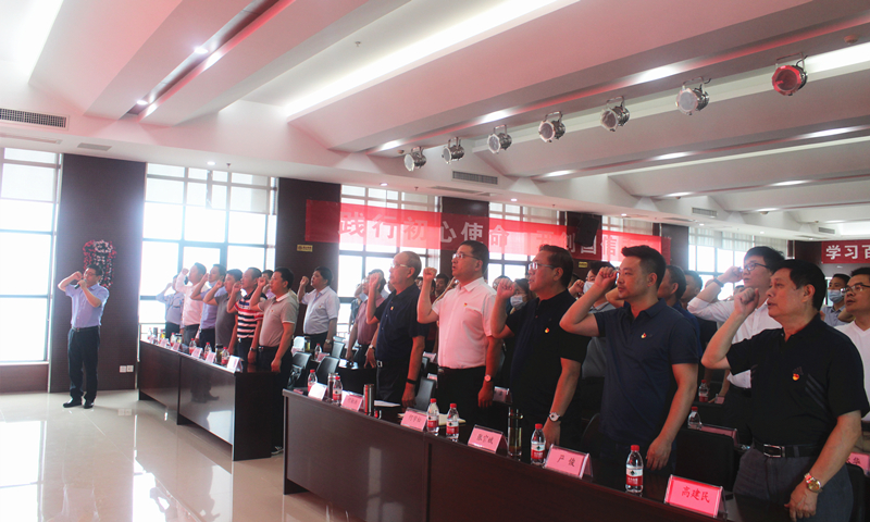 紧接着,组织全体党员重温入党誓词。在国信集团党支部书记周先玉的带领下,全体党员一起高举右手,面对鲜红的党旗,再次庄严宣誓。铿锵恢宏的誓词,强烈震撼着在场的每一位党员,一字一句,神圣而豪迈,铮铮誓言,体现了党员们对中国共产党的无限忠诚,坚定了入党使命,奋斗初心。