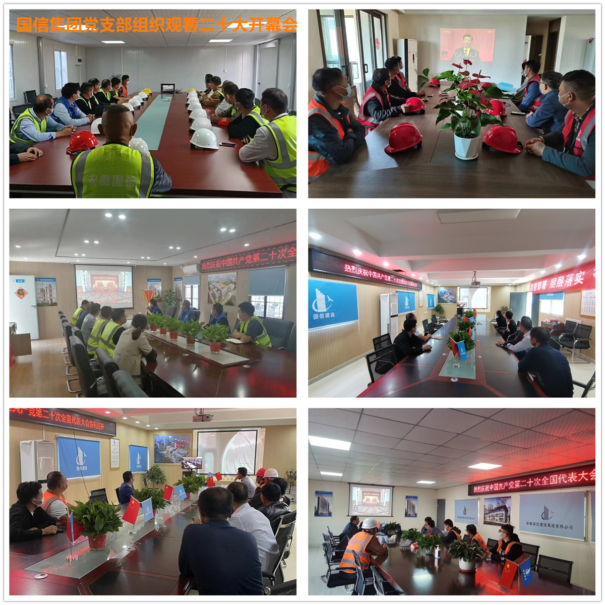 10月16日,中国共产党第二十次全国代表大会在京召开。国信集团党支部组织全员收看党的二十大开幕会直播,集团党支部书记、董事长周先玉,总经理何学松以及全体党员在会议室集中收看,其他职工和各项目部通过电视、网络等方式自行收听收看。