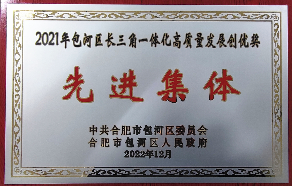 日前,合肥市包河区委区政府向国信集团颁发荣誉奖牌,授予国信集团“2021年包河区长三角一体化高质量发展创优奖先进集体”称号。