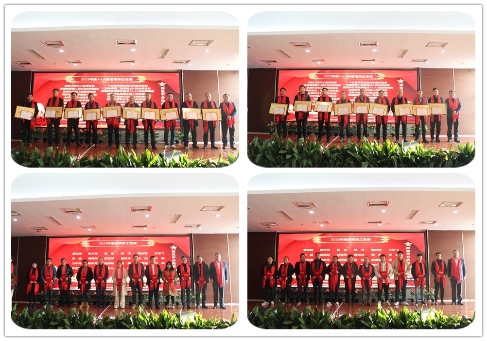 随后,集团副总经理张官斌宣读了《关于表彰2023年度AAA级信用单位和先进个人的决定》,对19个“AAA级信用单位”、23名“优秀员工”、15名“优秀质量管理人员”、12名“优秀安全管理人员”进行表彰。周先玉、何学松分别为获奖集体和个人颁发奖牌和证书。