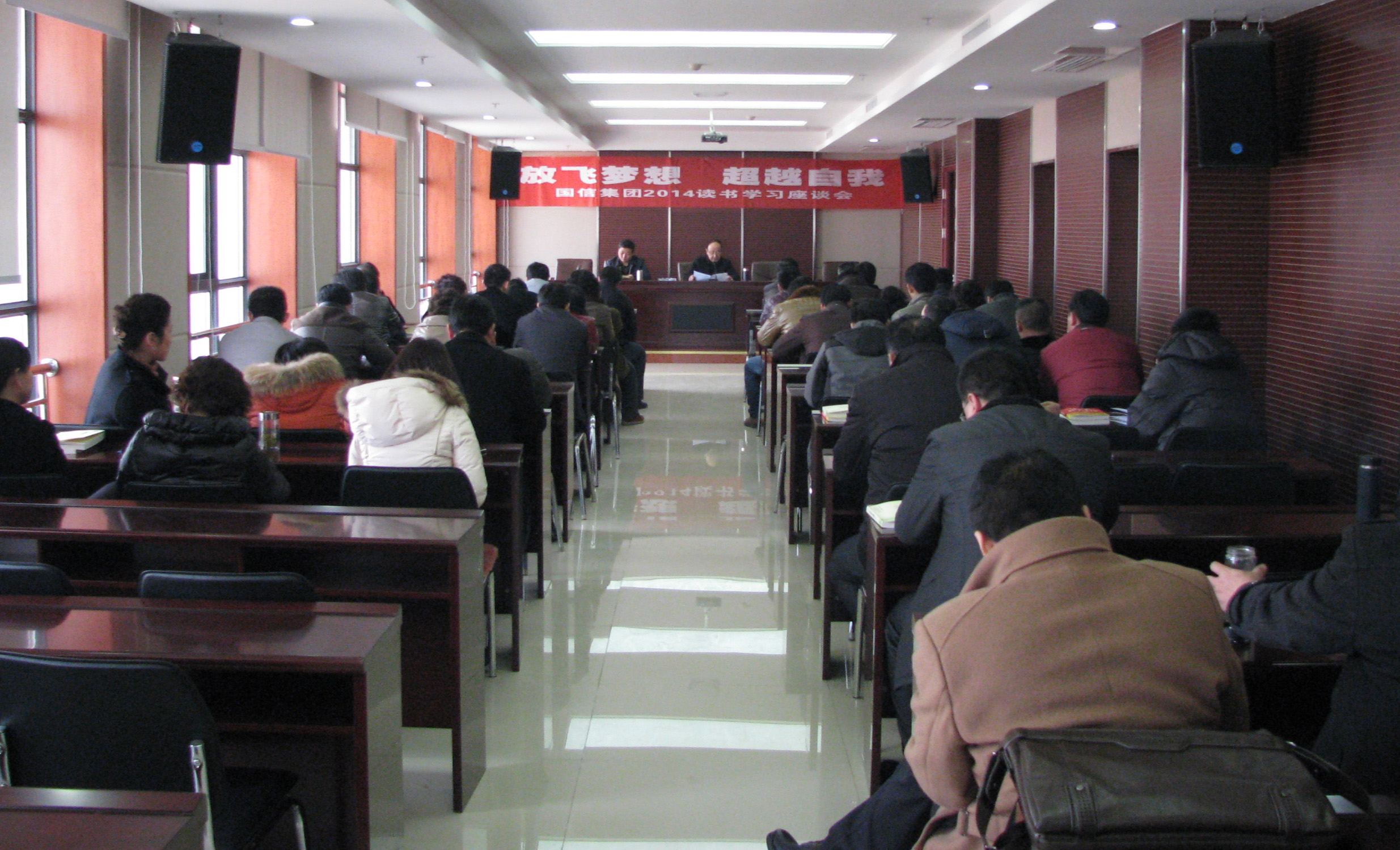 29日,新年上班后,国信建设集团公司开展第二届“读书月”活动——“放飞梦想,超越自我”暨国信集团2014读书学习座谈会。国信建设集团董事长何勋法主持学习座谈会,各子公司、各部门人员等参加学习座谈会。