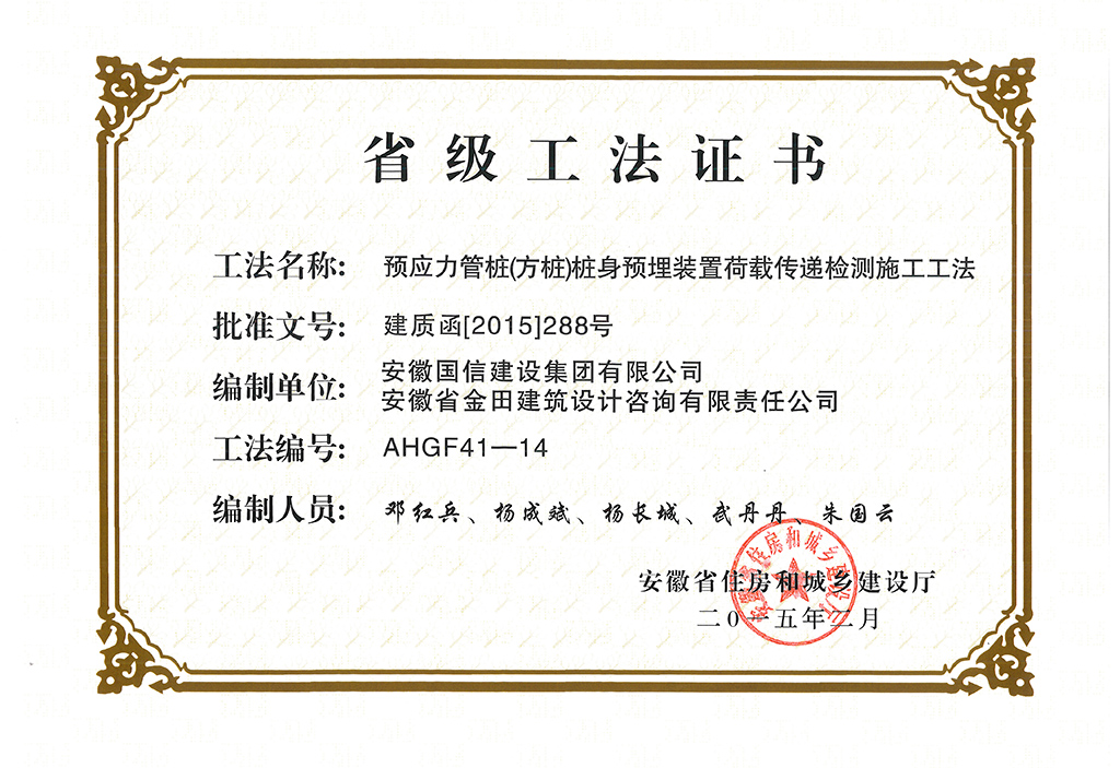 省级工法:预应力管桩(方桩)桩身预埋装置荷载传递检测施工工法