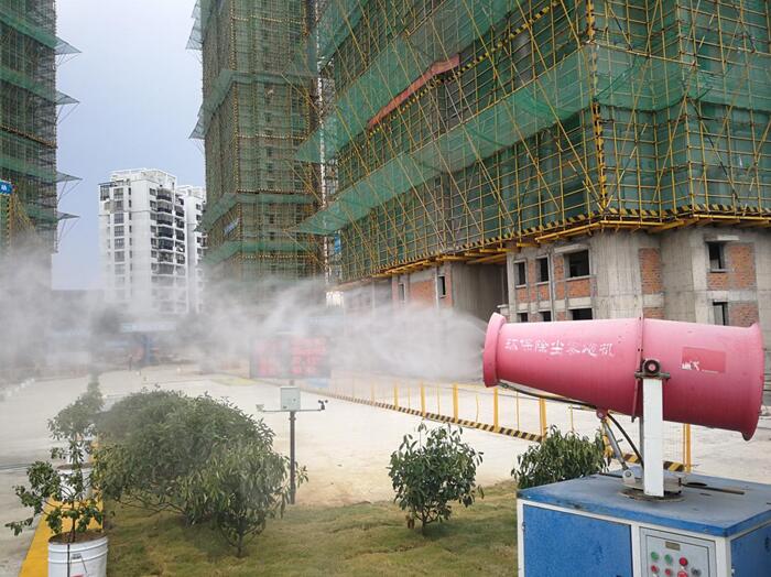 面对日益严峻的环境问题和严格的施工现场要求,国信集团始终坚持“绿色发展”理念,积极贯彻落实省市关于扬尘治理的工作要求,注重技术创新,大力推进“绿色施工”,为建设美丽中国助力。在文昌苑工地现场,项目部设置了车辆冲洗台、雾炮机、道路喷淋系统和外架喷淋系统,并全程进行监控。项目部严格落实当地建管部门提出的“六个百分百”要求,做到施工现场100%标准化围蔽、砂土不用时100%覆盖、路面100%硬地、施工作业100%洒水压尘、工地出口必须100%安装车辆自动喷淋设施、长期裸土100%覆盖。此外,为进一步加强建筑工地防尘标准化管理,项目部还安装运行了扬尘在线监测系统,实现了手机APP的24小时监测,便于对发现的扬尘污染及时处置,逐步实现建筑扬尘精细化管理,提高管理水平。