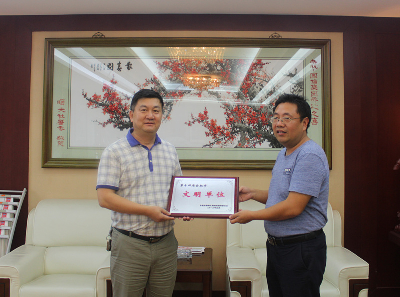 会前,吴森亲手将“第十四届合肥市文明单位”牌匾授予国信集团,并表示祝贺。