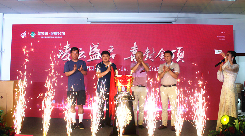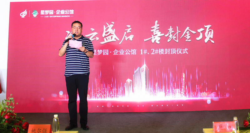 8月10日上午,由国信建设集团承建的星梦园1#、2#楼举行封顶仪式,合肥众望置业公司董事长姚尔强、总经理刁京龙,国信建设集团总经理何学松以及项目监理单位合肥康达工程咨询有限公司、园区业主代表等共同见证了这一喜庆时刻。