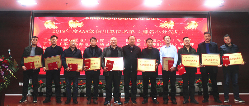 集团副总经理张官斌宣读了《关于表彰2019年度AAA级信用单位和先进个人的决定》,随后对王家林(黄山置地)项目部等11个“2019年度AAA级信用单位”、朱国云等22名“2019年度先进工作者”、徐建等8名“质量管理先进工作者”、程本国等6名“先进安全员”进行了表彰。
